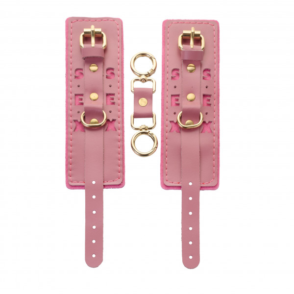 Наручники с надписью SEX "Crazy Handmade" розовые, кожа