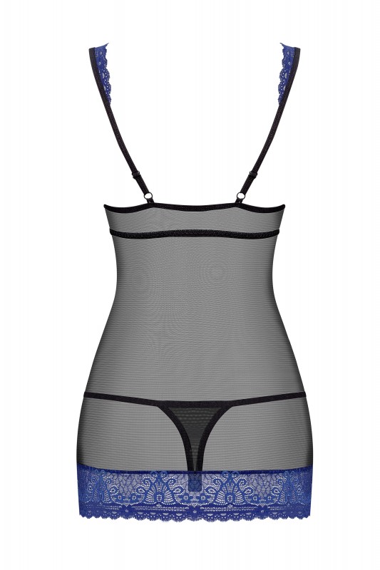 Чарующий пеньюар из коллекции "Obsessive" в изумительном сочетании черного и синего цветов - это лучшее нижнее белье!